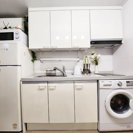 Die Unterkünfte ist mit einer voll ausgestatteten Küchenzeile ausgestattet, die einen Wasserkocher, einen Kühlschrank und Küchenutensilien enthält, um Ihren Komfort zu gewährleisten. Die U-Bahn-Station Hongik University ist ebenfalls in der Nähe von der Unterkunft.
